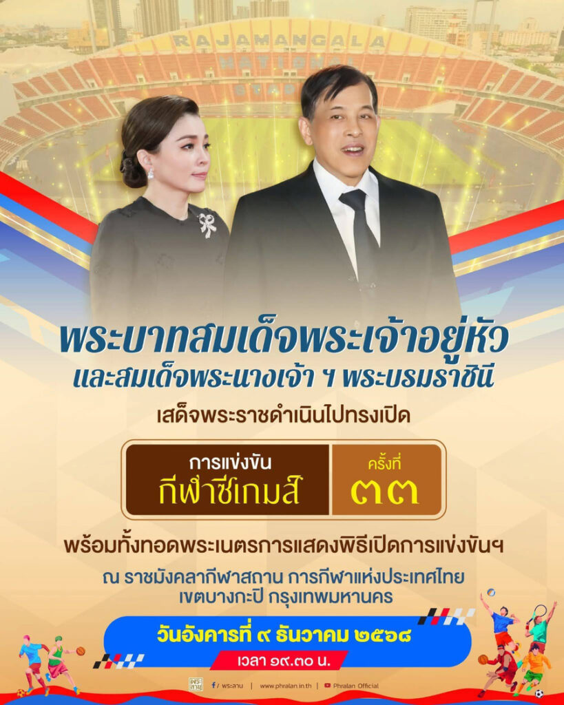 พระบาทสมเด็จพระเจ้าอยู่หัว และสมเด็จพระนางเจ้าฯ พระบรมราชินี เสด็จพระราชดำเนินไปทรงเปิดการแข่งขันกีฬาซีเกมส์ ครั้งที่ ๓๓ พร้อมทั้งทอดพระเนตรการแสดงพิธีเปิดการแข่งขันฯ